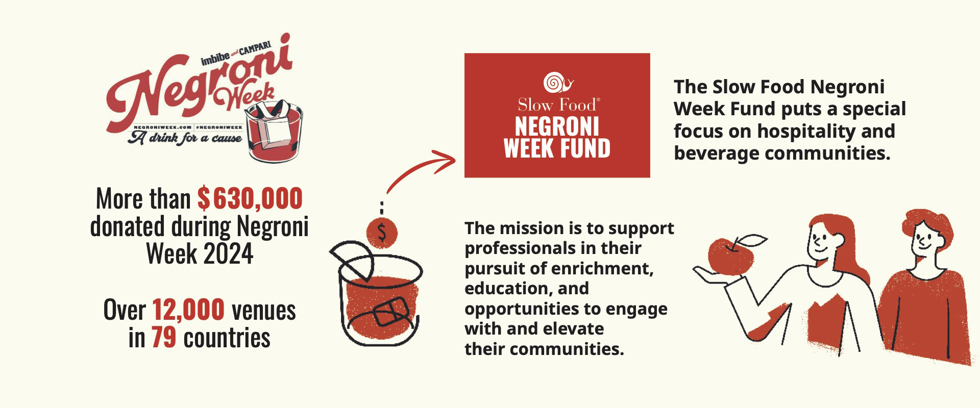 is fueled by donations raised during Negroni Week and provides incubator grants of up to $15,000 for activities around the world that support and promote good, clean, and fair food and beverage for all. These grants support projects that advance cultural and biological diversity and that focus on community-based food and beverage education and knowledge exchange.